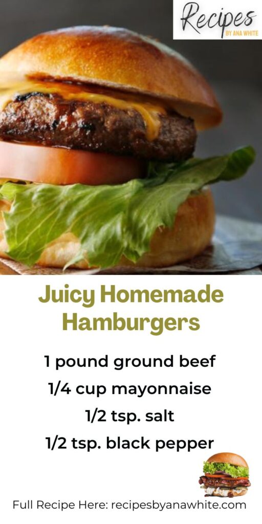 minutesMake delicious, thick, juicy burgers at home! This is my no fail recipe that has just the right amount of seasonings to make the perfect burger every time. Not dry or tough and holds together well – perfect!